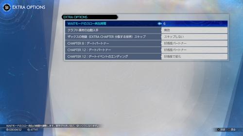 ゴールドソーサーのデートパートナー選択などの、CHAPTER SELECT時のプレイ環境を設定することができ、メインメニューの「SYSTEM」→「EXTRA OPTIONS」で設定できます。