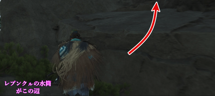 帰り道は来た道を戻るのではなく、水筒の西の岩から上に昇ると、「御霊の墓標」(刀装具「不止之嵐」入手)があるので、それも併せて回収しよう。