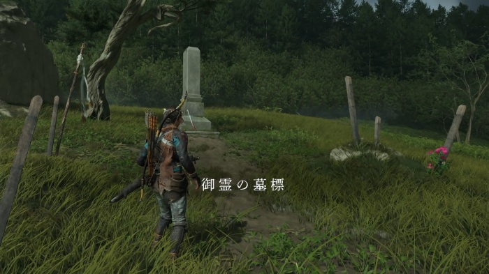 水筒を入手したあと、水筒が落ちていた場所の西の岩を上に昇ると、御霊の墓標がある。