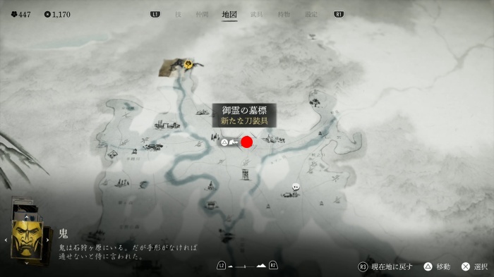 「御霊の墓標」は、各地で祀られている斎藤にやられた武士たちの墓で、ここでは「刀の装具」を入手することができます。