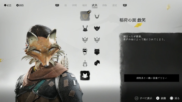 現在に戻ると、井戸の下を調べると、面防具「稲荷の面 戯笑」入手。