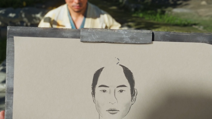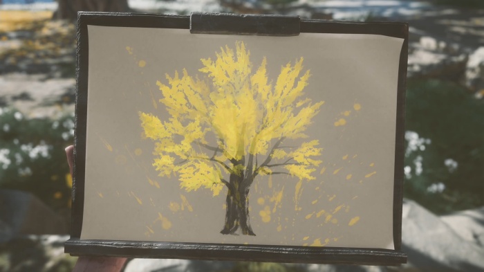 追想で父に話しかけると、銀杏の樹と父の似顔絵の2枚の墨絵を書くイベントが発生。