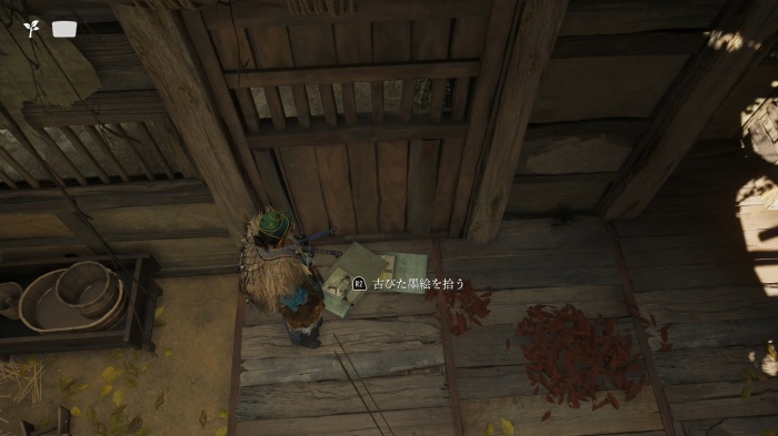 現在に戻り、母屋の床に落ちている墨絵を調べるとクエストクリア。