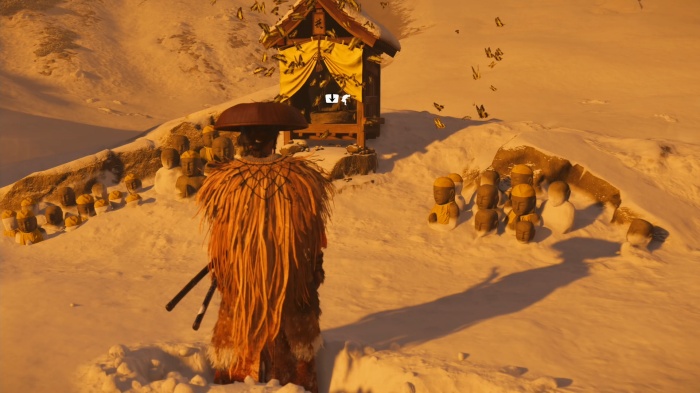 頂上の社に「礼」をすると、護符「金屋子神の護符」(骸漁りで得られる金属類と火薬の獲得数増加)入手。