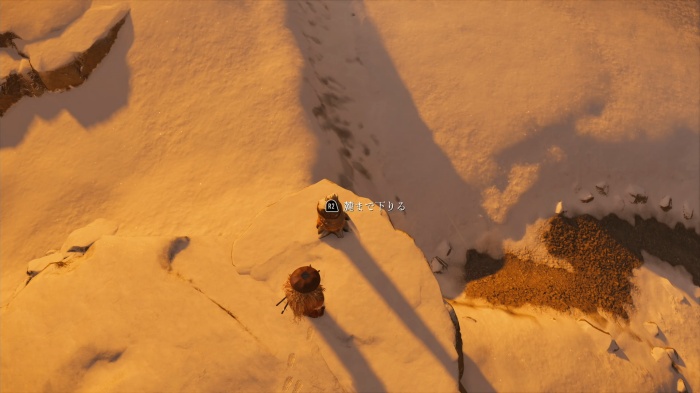火口の縁を最端まで素材を回収しつつ進むと杭があるので、それを調べると麓まで戻ることができる。