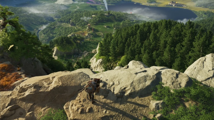 社がある頂上南東には、登れる崖がある、上に宝箱(魚×3)がある。