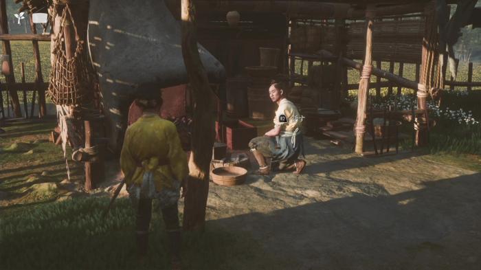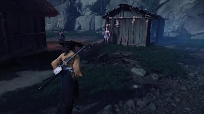 家の前に着いたら、入口にある木の柵を調べて中に入りましょう。