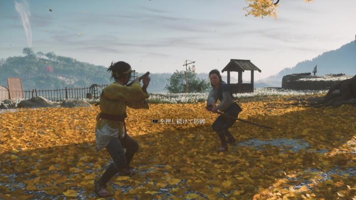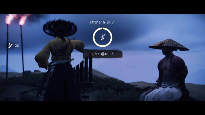 稽古では、防御や受け流し、回避などの戦闘の基礎的なチュートリアルを学ぶことができます。