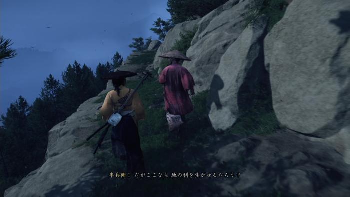 崖の上から周囲を確認した後、草むらなどを利用して敵から隠れつつ先に進む必要があります。