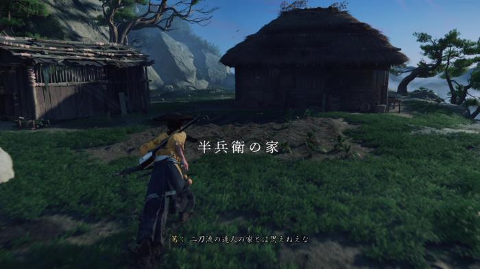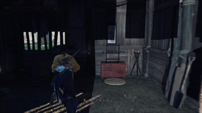 半兵衛の前にある稽古用の刀を拾うと稽古を始めることができます。