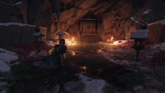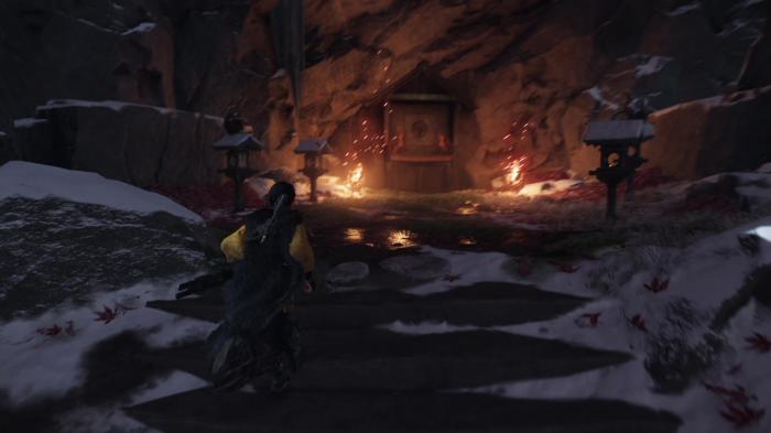 ここの謎解きは、狐の像が上に乗っている灯籠のみに火をつけることで先に進むことができます。