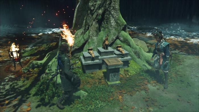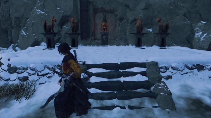 個々の謎解きは、散らばっている2つの狐の像を向かい合うように設置すると先に進むことができます。