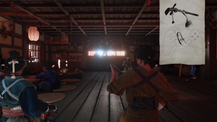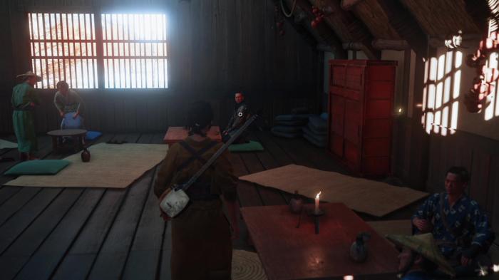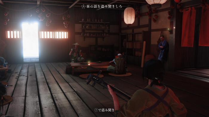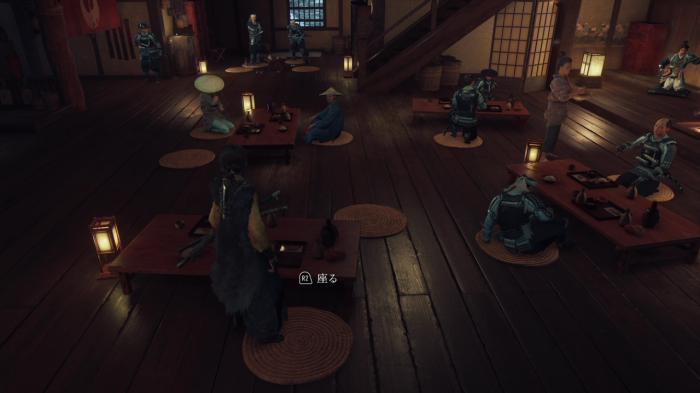 上記画像の場所に座ることで他の松前侍たちの話を盗み聞くことができます。
