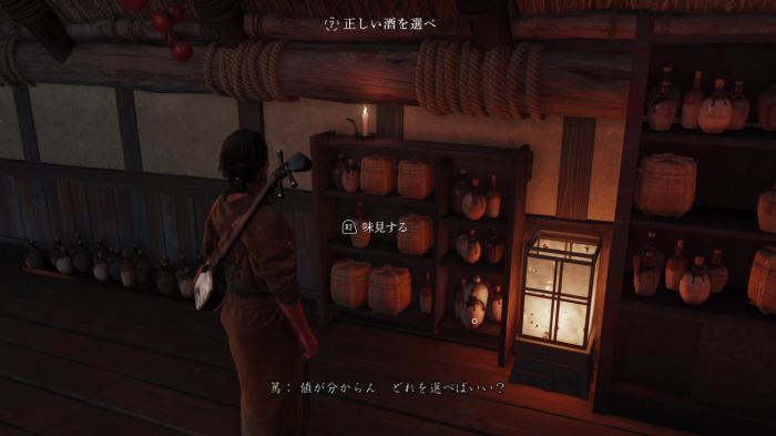 一番左の棚にある酒を選びましょう。