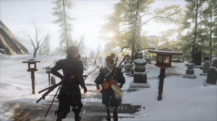 お雪と墓参りする