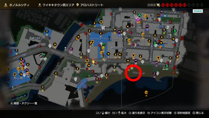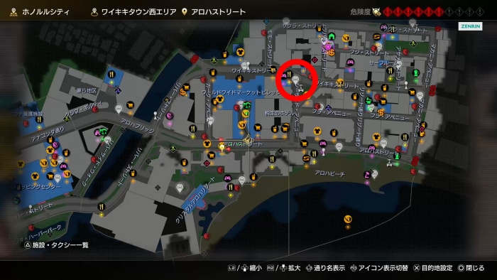 発生場所 龍が如く8_サブストーリー016_マップホノルルシティ