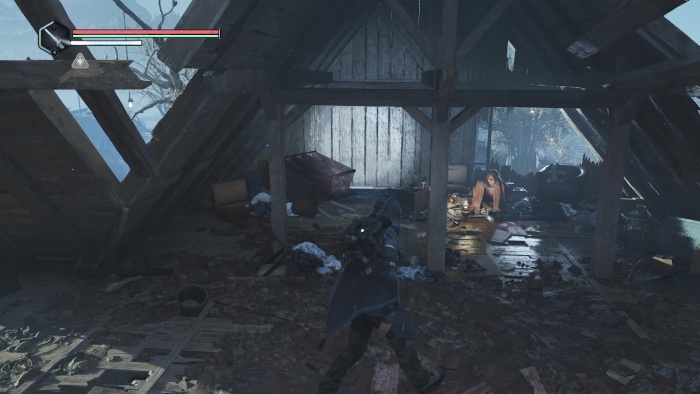 士官の左奥にあるハシゴを上がって目の前の建物に入ります。階段を上がってハシゴで屋根裏に行くとレベッカがいるので話しかけましょう。
