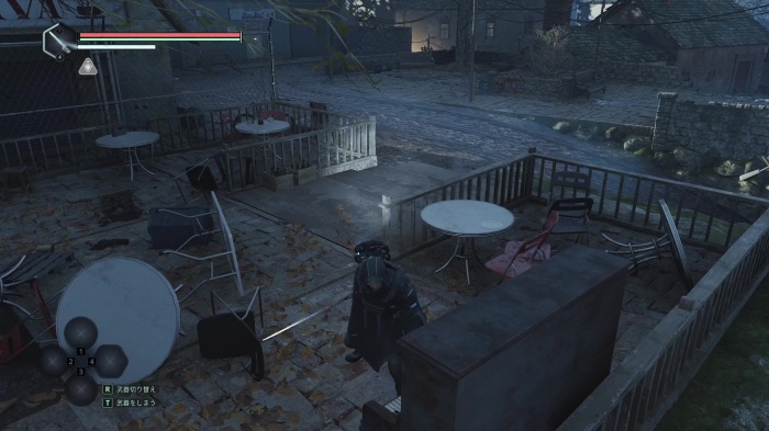 扉を開けて外に出ましょう。右手の丘を登ってすぐ左にピアノがあります。調べると楽譜-我らの誇りを入手します。これは街の入り口近くにいるバイオリンを弾いた男性に渡しましょう。