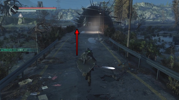 北東のトンネルに向かいましょう。トンネルの入り口に武器「リムビックの両手槍」とモジュール「ワールウィンド」が落ちています。