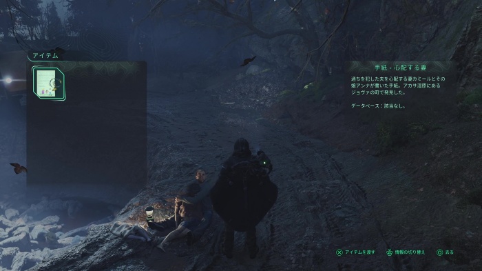 アカサ湿原の入り口まで戻り、掘削機の近くにいる父親に手紙-心配する妻を渡しましょう。これで善行「離散」がクリアになります。