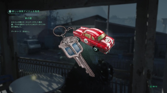 家の中のバルコニーで車の鍵を入手しましょう。善行「ビクターの祈り」が発生します。