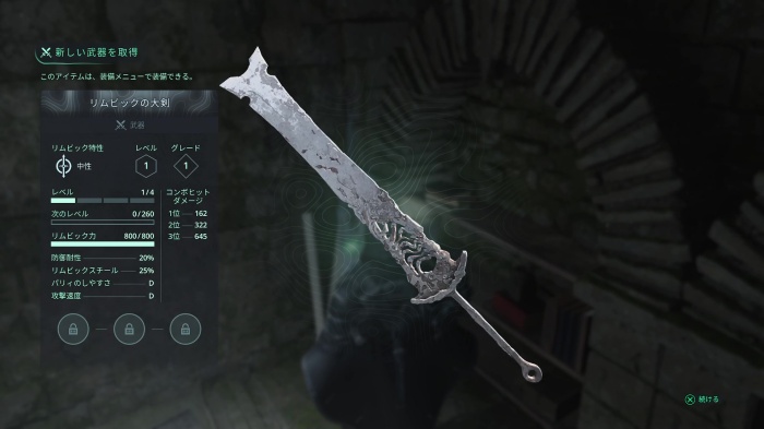 また、近くに嘆きのリムビック杖(Y)とリムビックの剣が落ちているので忘れずに拾いましょう。