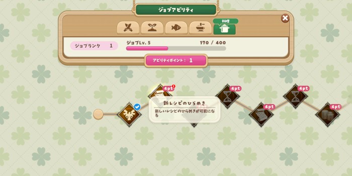 料理アビリティも一本道なので順番にアビリティを習得していきましょう。