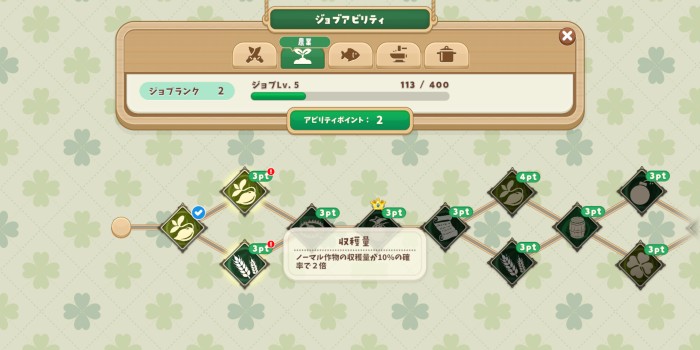 農業アビリティは収穫量が増えるものを積極的に取っていくのがおすすめです。