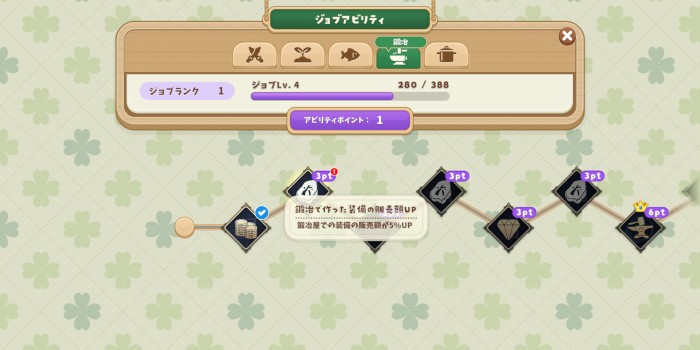 鍛冶アビリティは一本道なので順番にアビリティを習得していきましょう。