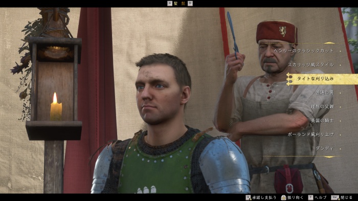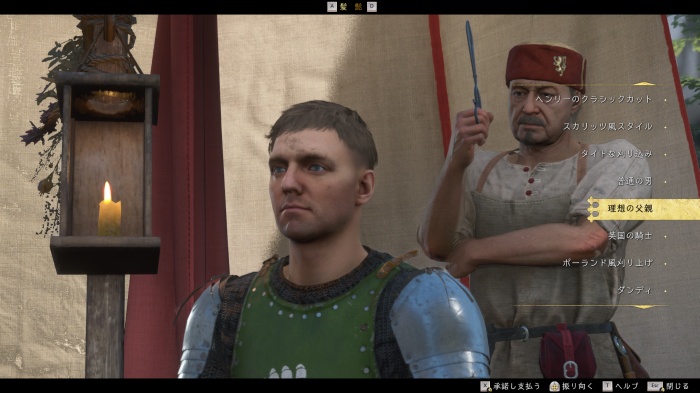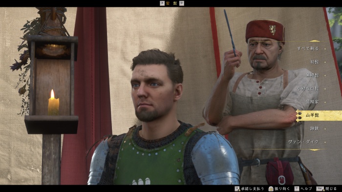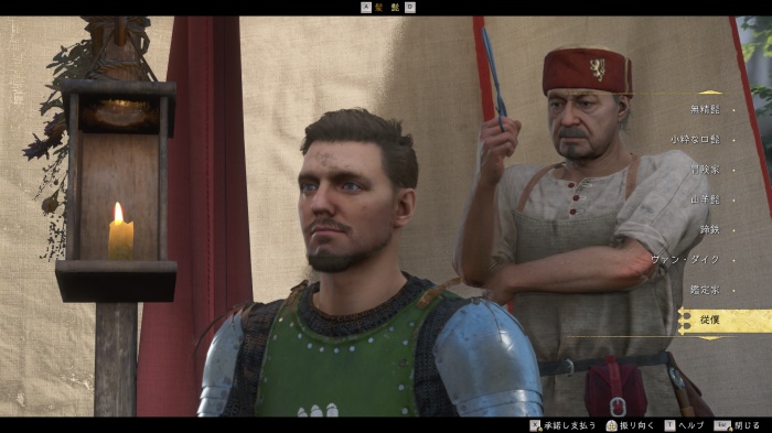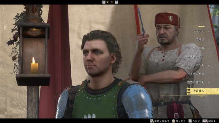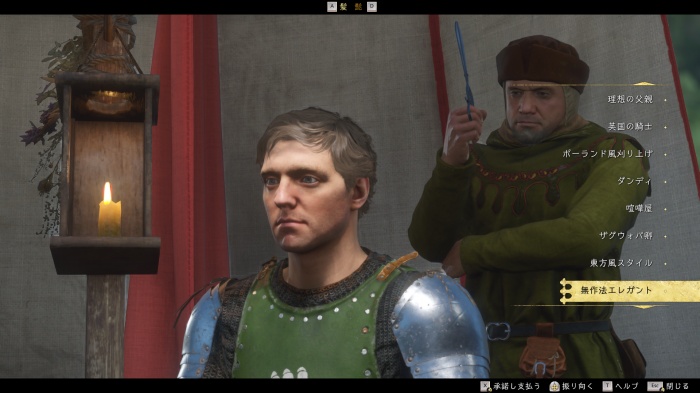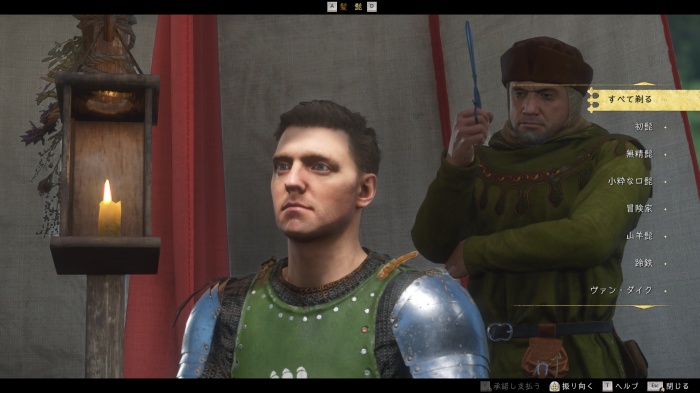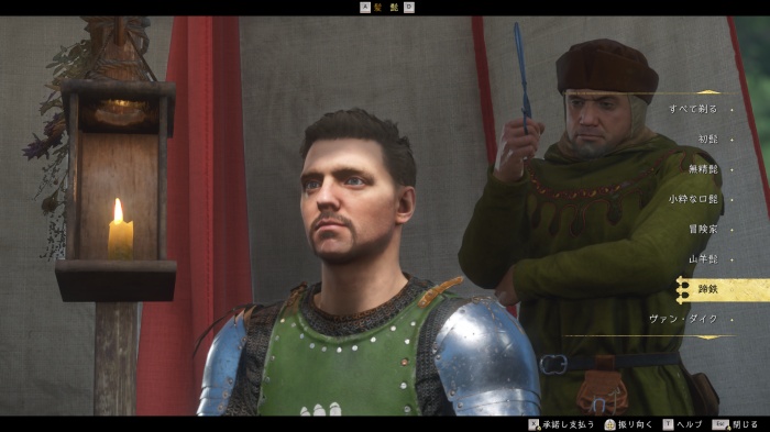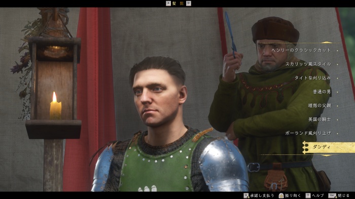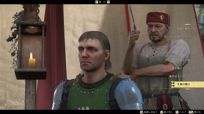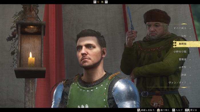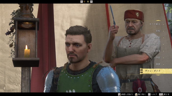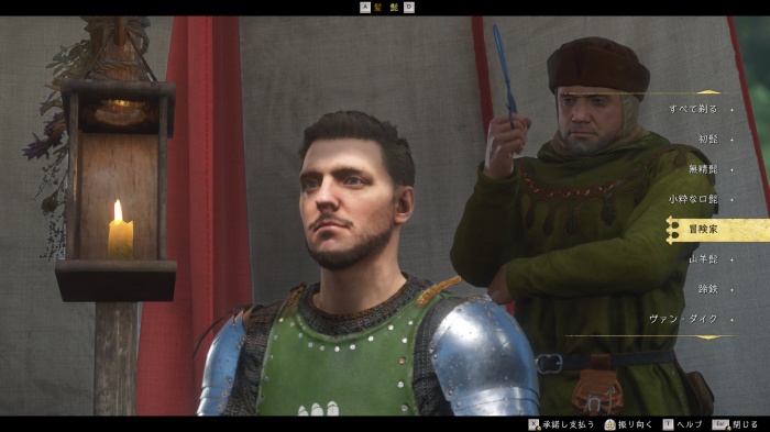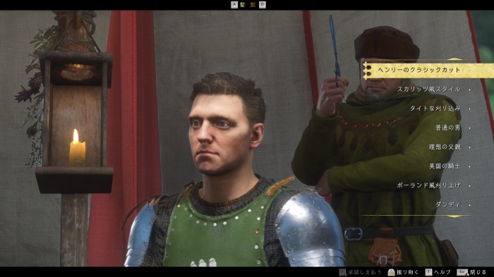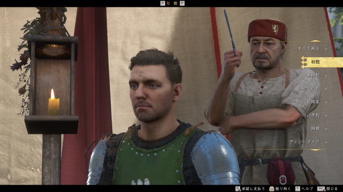 浴場にいる理容師に話しかけてヘンリーの髪や髭などの見た目を変更することができる。理容師でできることは以下。