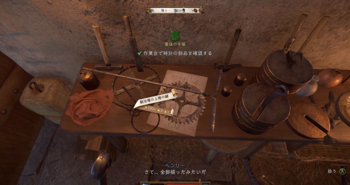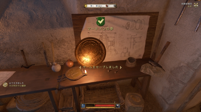 自室の掃除を完了すると「古い機械のスケッチ」を入手。さらに鍛冶場の2階を「自室」として利用可能になる。