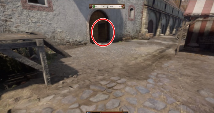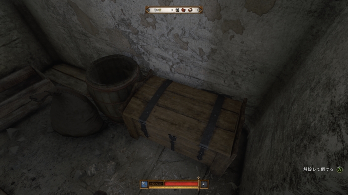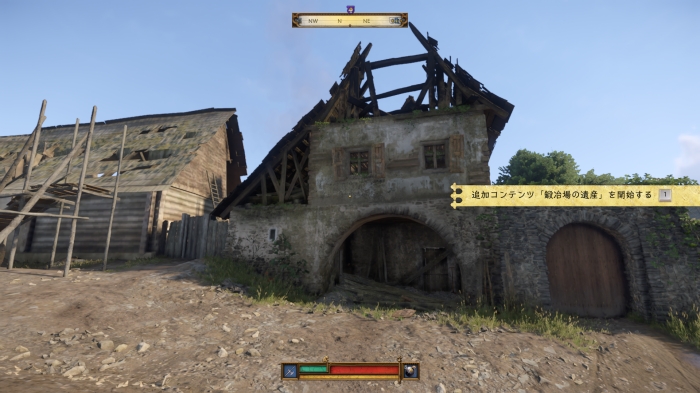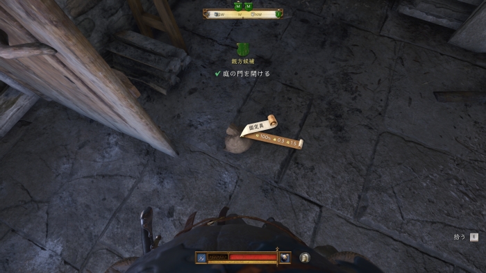 この際、鍛冶場のかんぬきがかかった扉を解錠しておくと、すぐに中庭に進むことができるので、瓦礫を運ぶ前に開けておこう。