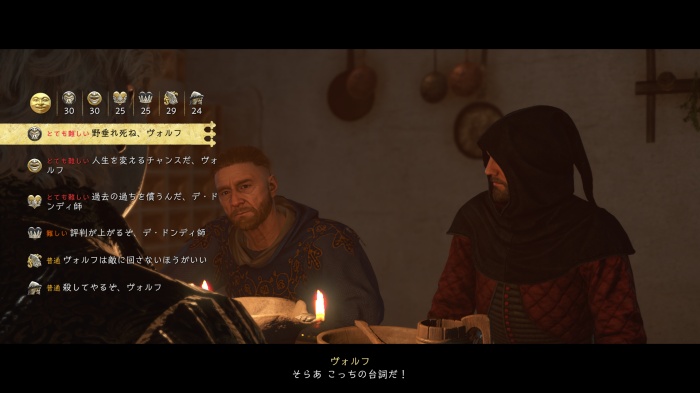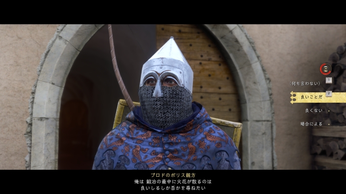 身分を証明しろと言われるが、「俺はラジク・コビラの私生児だ」を2回選ぶと評価が下がるので、それ以外の選択肢を選ぼう。