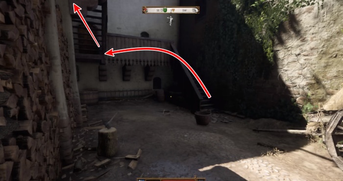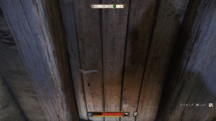 庭にある階段を上がり2階へ。鍵(難度:難しい)がかかっているのでロックピックで解錠しよう。