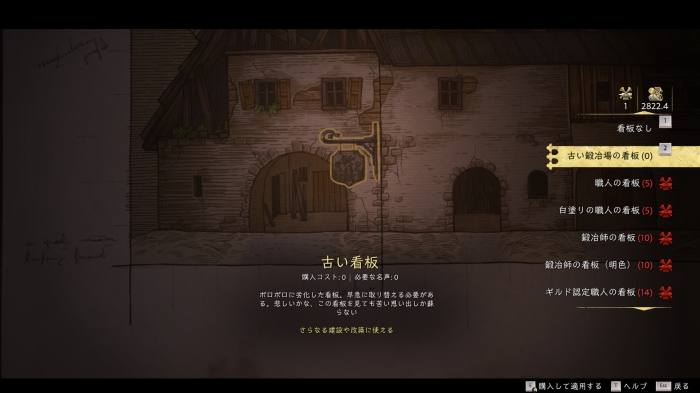 これ以降、鍛冶屋(自宅)を名声とお金を使用することで自分好みにアレンジすることができるようになる。