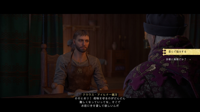 | 【クラウスの紹介】クラウス・アイヒナー親方と話し、盗賊討伐を受注する |
