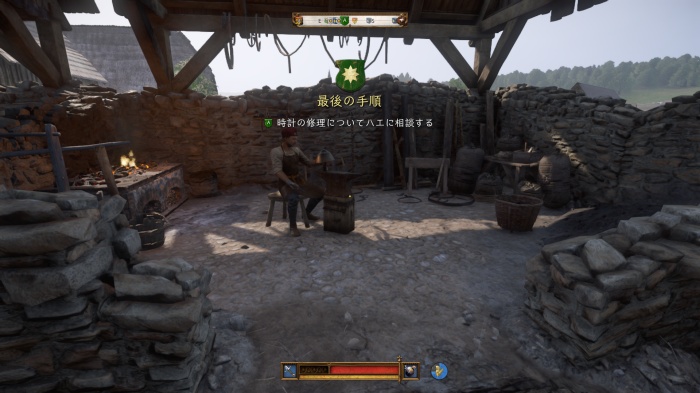 焼け落ちた鍛冶屋に戻り、マグダレーナと会話して、鍛冶屋の修繕を始める