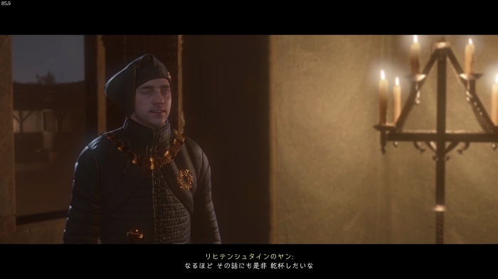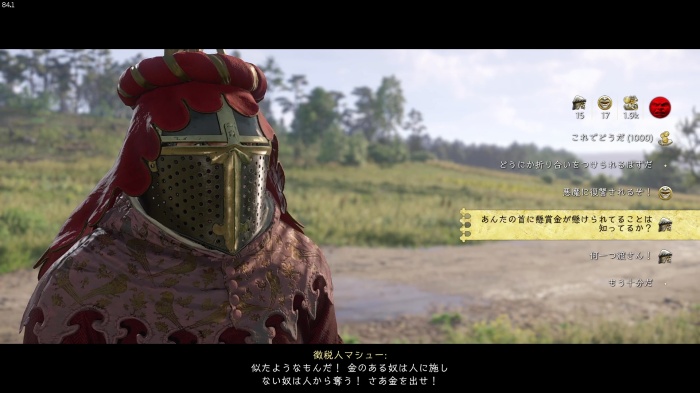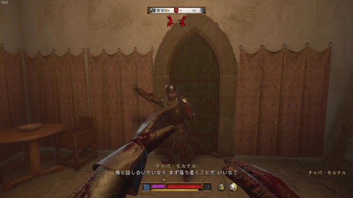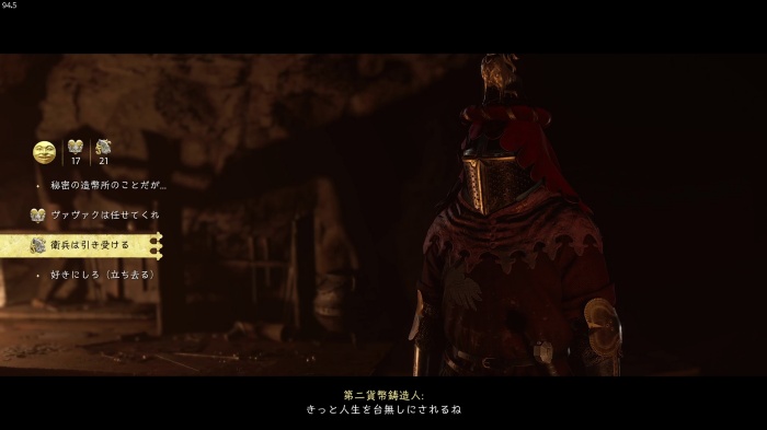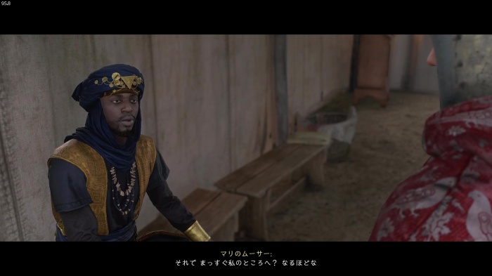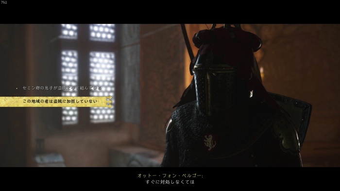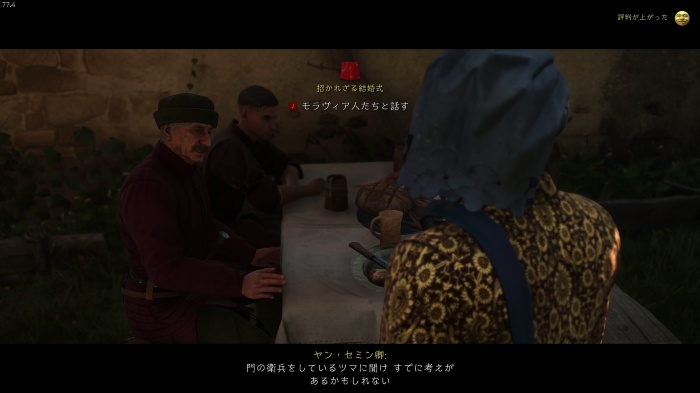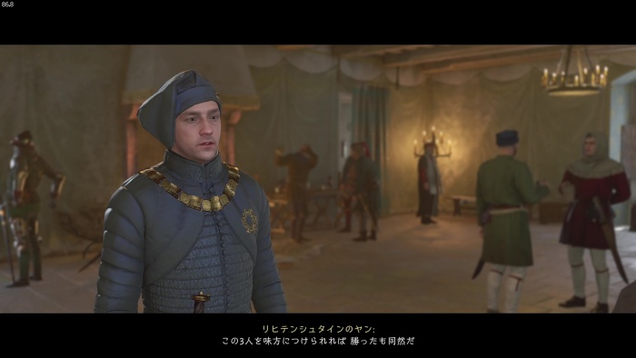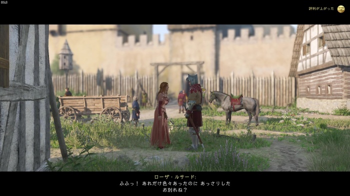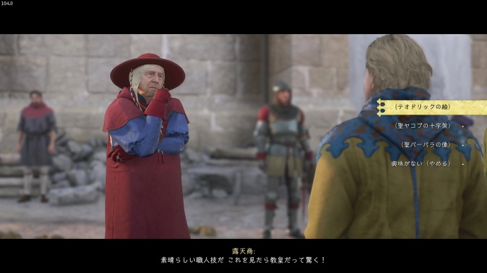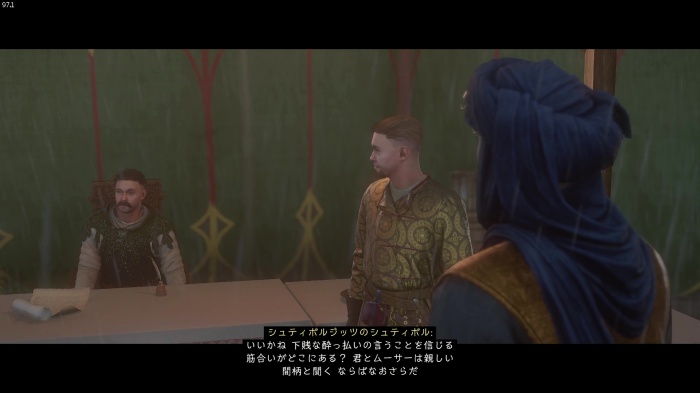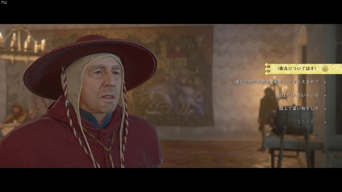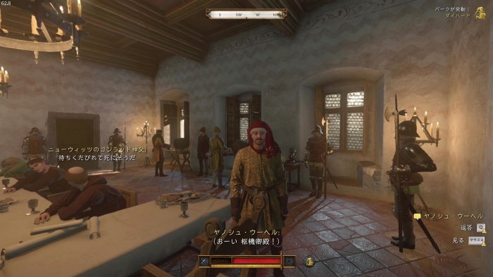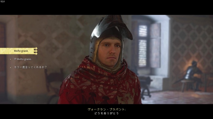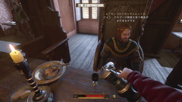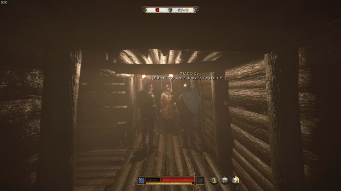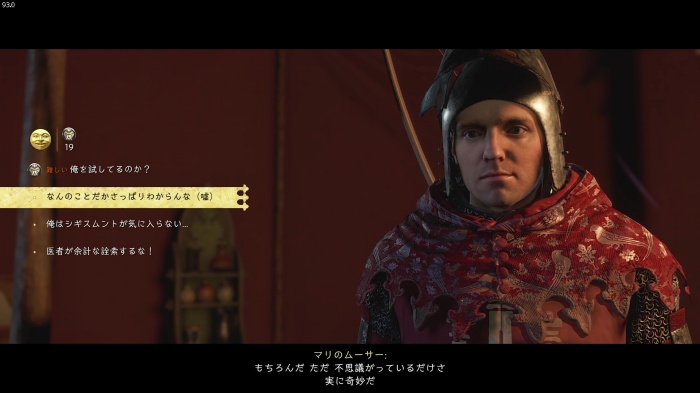 「お前がなぜ信じられるんだ?」というトーマス卿の質問に対する正解選択肢は1番目の「使者として同盟を結びに来た」。これを選ぶとトーマス卿の評判アップ。また2番目の「使者として同盟を結びにきた」も評判を上げることができます。
