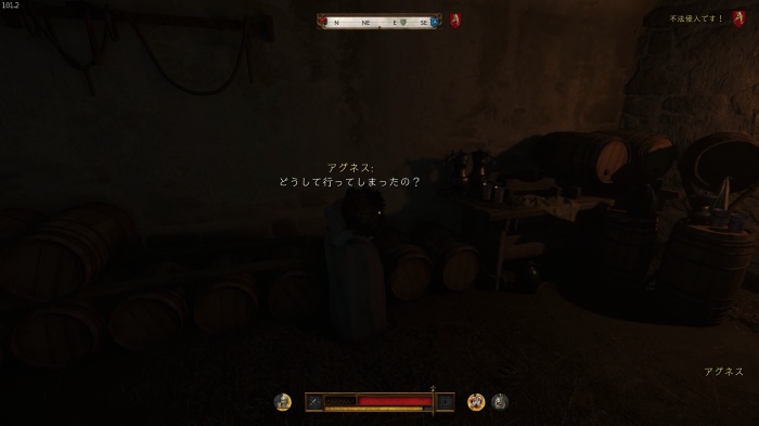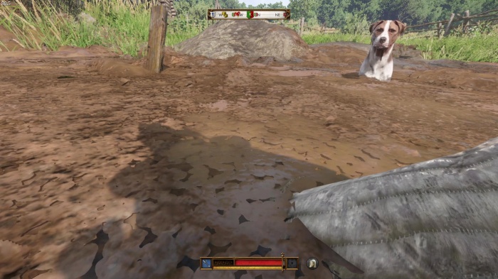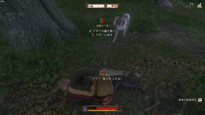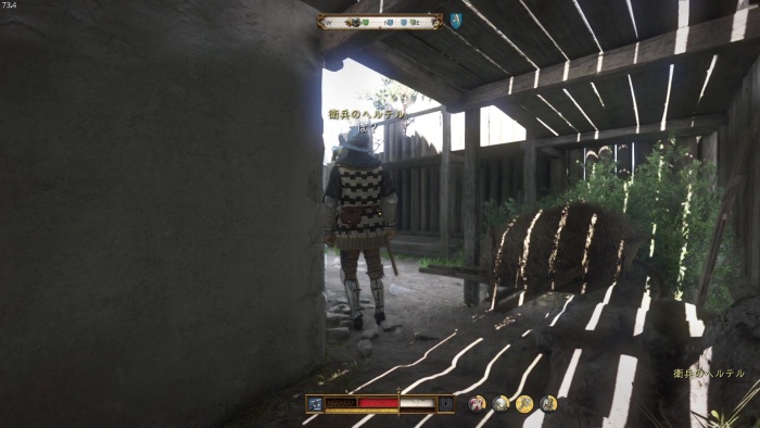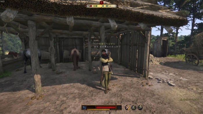 ハンスの居る所へ向かう途中オーツに吠えている飼い犬のマットがいるので、Xキー / Yボタン長押しでマットを呼ぼう。