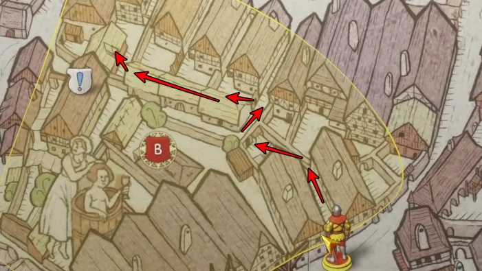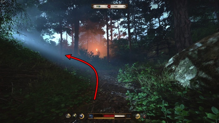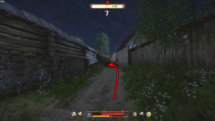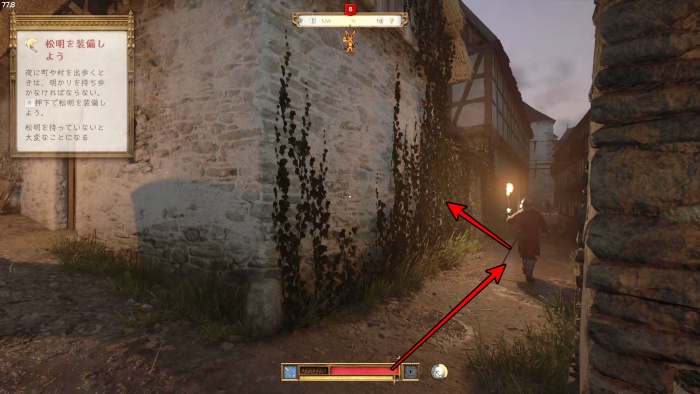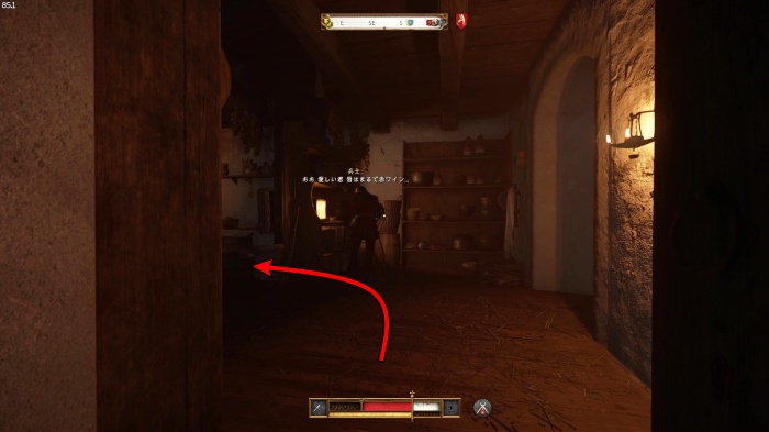 ハンスはいなくっており敵がいるので、元来た道を戻り、左に曲がって小道を抜けましょう。