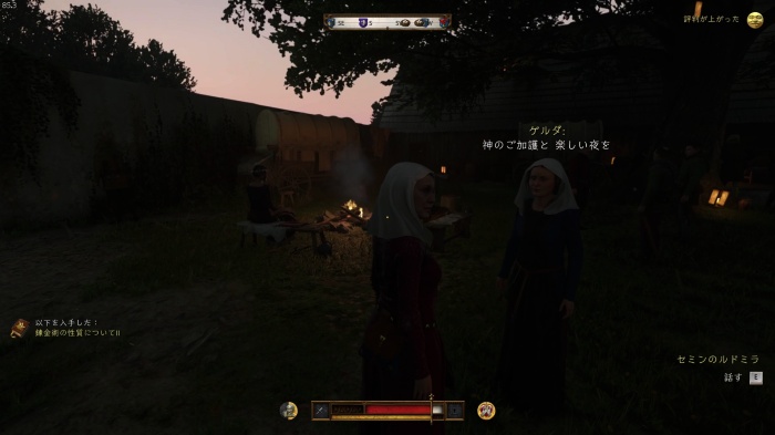 ここでは選んだ選択肢によってスキルレベルが上がります。おすすめは「話術」→「学問」→「剣」。