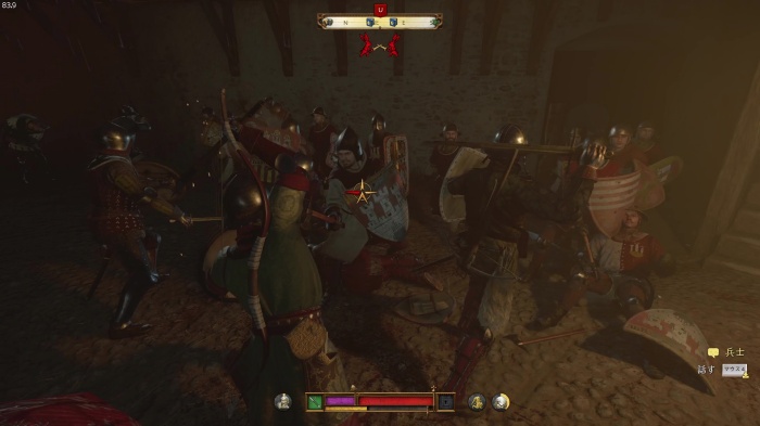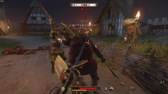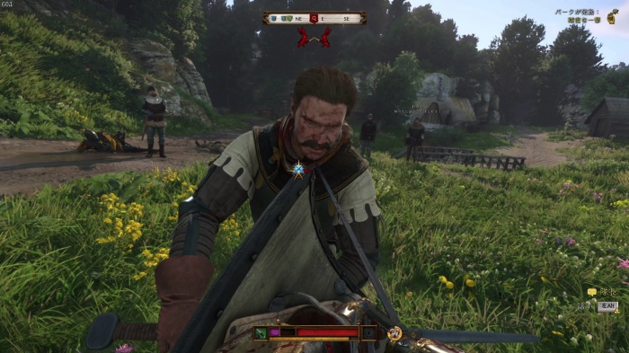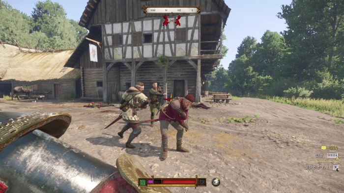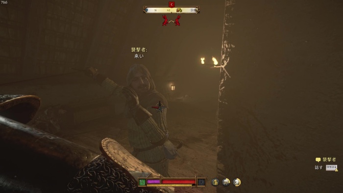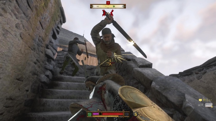 盗賊との戦闘です。こちらからは攻撃を仕掛けず、パーフェクトブロック→突き返しを狙いましょう。勝っても負けてもイベントは進行します。