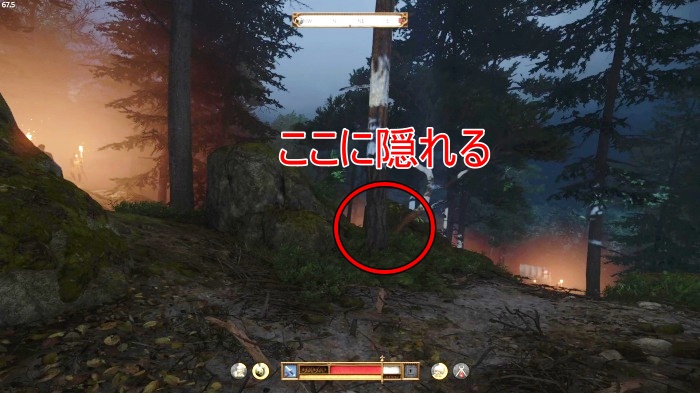 C / Rスティック長押しでしゃがむことができます。隠密に移動したいときはしゃがみを使いましょう。Caps Lockでしゃがみながらゆっくり移動ができます。