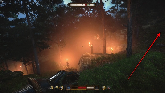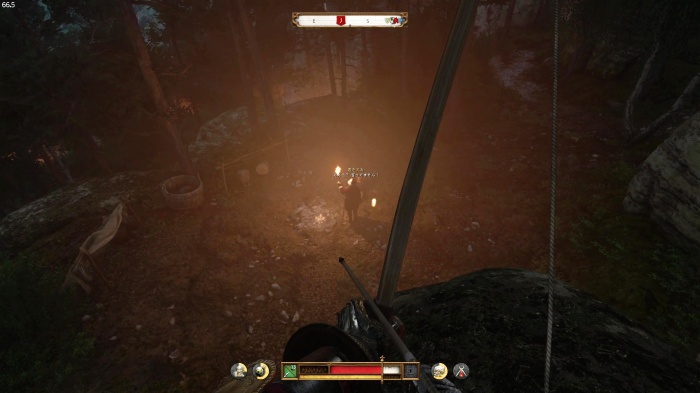 右クリック / LTボタン長押しで矢を装填し、左クリック / RTボタンで矢を発射して攻撃しましょう。