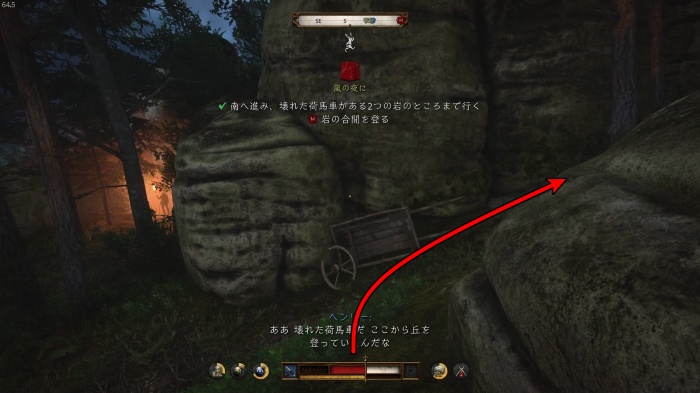 岩場まで来てハンスと会話したら岩場への入り口を探索します。