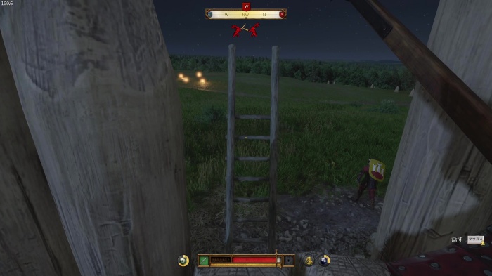 梯子を登ってくる兵士を倒し、梯子をEキー / Aボタン長押しで叩き落としましょう。