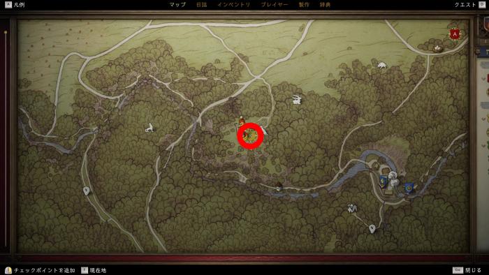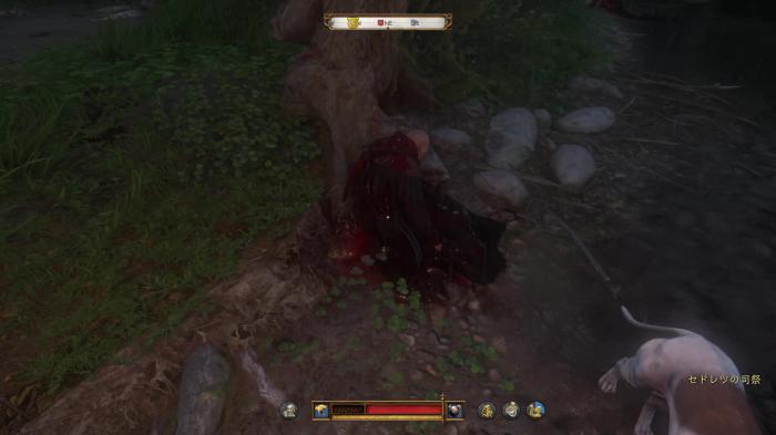 川辺の方に向かうと木の近くに司祭のしたいがあります。