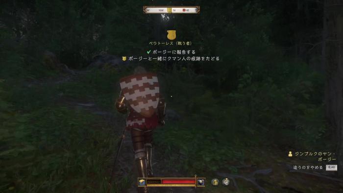 ポージーとクマン人の痕跡をたどって移動するの付いていきましょう。
