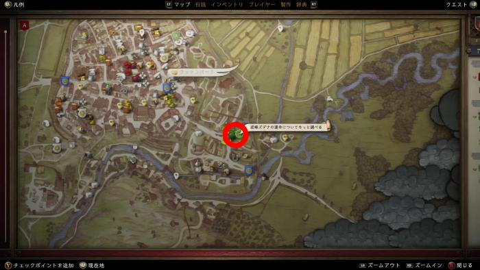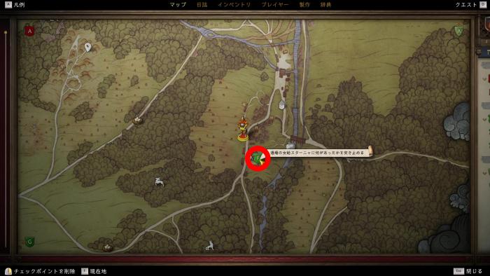 上記画像の場所にいる墓掘り人のフランティシェクと話しましょう。アリスの友人のバルボラと話してみるといい、と教えてくれます。