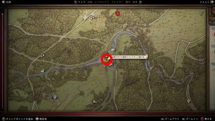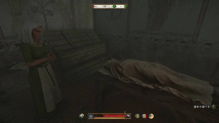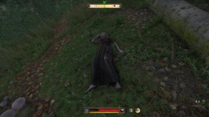 籠を調べた後、籠がある場所から丘を登った先にあるズデナの死体を詳しく調べましょう。